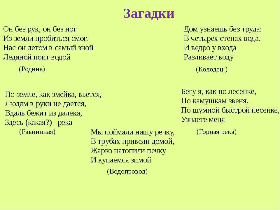 Теплых континентов —Пять.Есть где людям погулять!— Значит, пять всего?— Постой,— Есть еще один, шестой.Там пустынные места.Все покрыто слоем льда.В море ходят льдины,А на них пингвины.(Это антарктида)