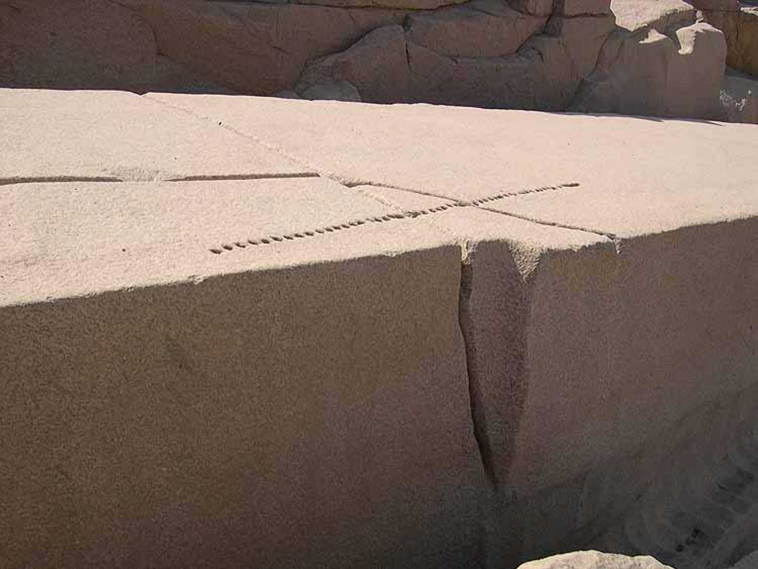 На Асуанском обелиске сохранились следы обработки настолько необычными инструментами, что ученые и технологи до сих пор утверждают, о невозможности создания таких инструментов, даже в современном мире. Обелиск обработан с трех сторон, а его четвертая грань составляет одно целое с гранитной скалой. Технологи по обработке гранита не могут найти решение, как древние египтяне собирались решить эту проблему. Ну и гигантский вес обелиска, который превышает в 1200 тонн. Ученым и строителям, так и не понятно как можно было транспортировать и устанавливать эту гигантскую гранитную стелу, так как даже с современными знаниями и техникой, эта задача кажется неразрешимой.