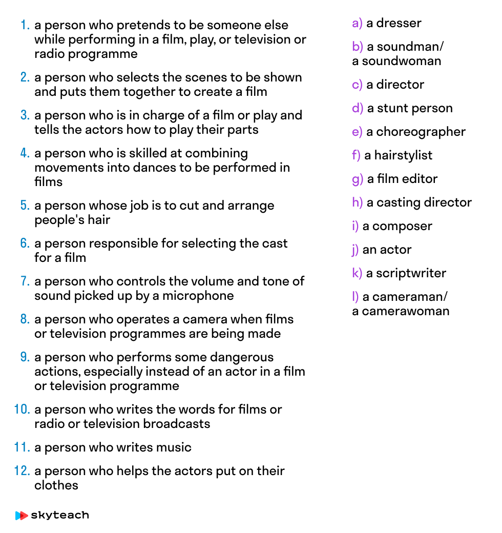 После этого попросите учащихся сопоставить профессии с их определениями.