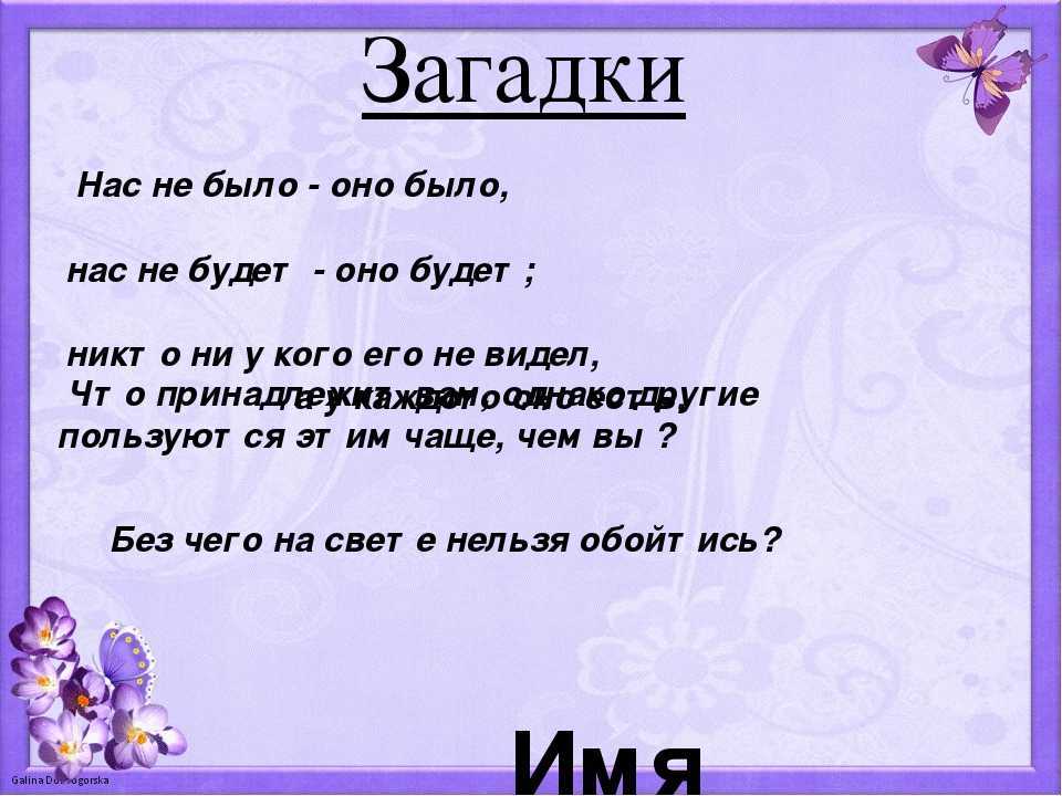 Что самое ценное, что у нас есть? Это наше имя! Как хорошо, когда оно тебе нравится, когда оно звучное и передает всю твою сущность. Мы привели в пример несколько интересных загадок, на которые будет интересно отвечать любому ребенку.