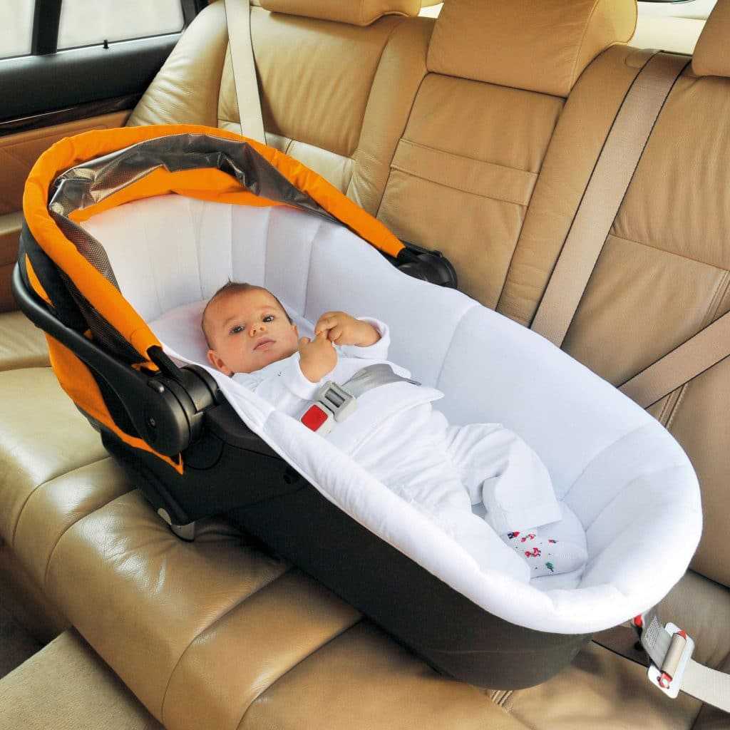 В некоторых случаях вместо люльки пользуются сьемной корзинкой от коляски. Однако она не может гарантировать полную безопасность малыша, так как она не предназначена для этого. Переноска очень не надежна, и применять ее можно только в крайнем случае. Крепить ее нужно боком к ходу движения ремнями безопасности. Рядом должен сидеть человек, который будет смотреть за малышом.