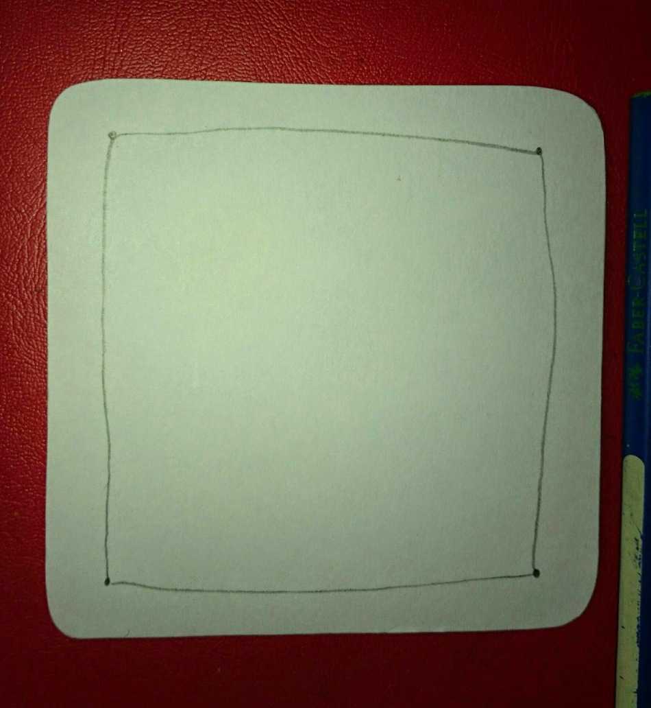 - Следует на листике для рисования сделать рамку карандашом, оставив небольшие поля, для этого по углам поставить точечки и к ним провести по периметру тонкие линии карандашом. Такой способ должен помочь новичку ориентироваться в разграничении пространства на листе. Постепенно, с приходящим опытом такую рамку не обязательно делать, как говорится, все будет возникать само собой «на глаз».