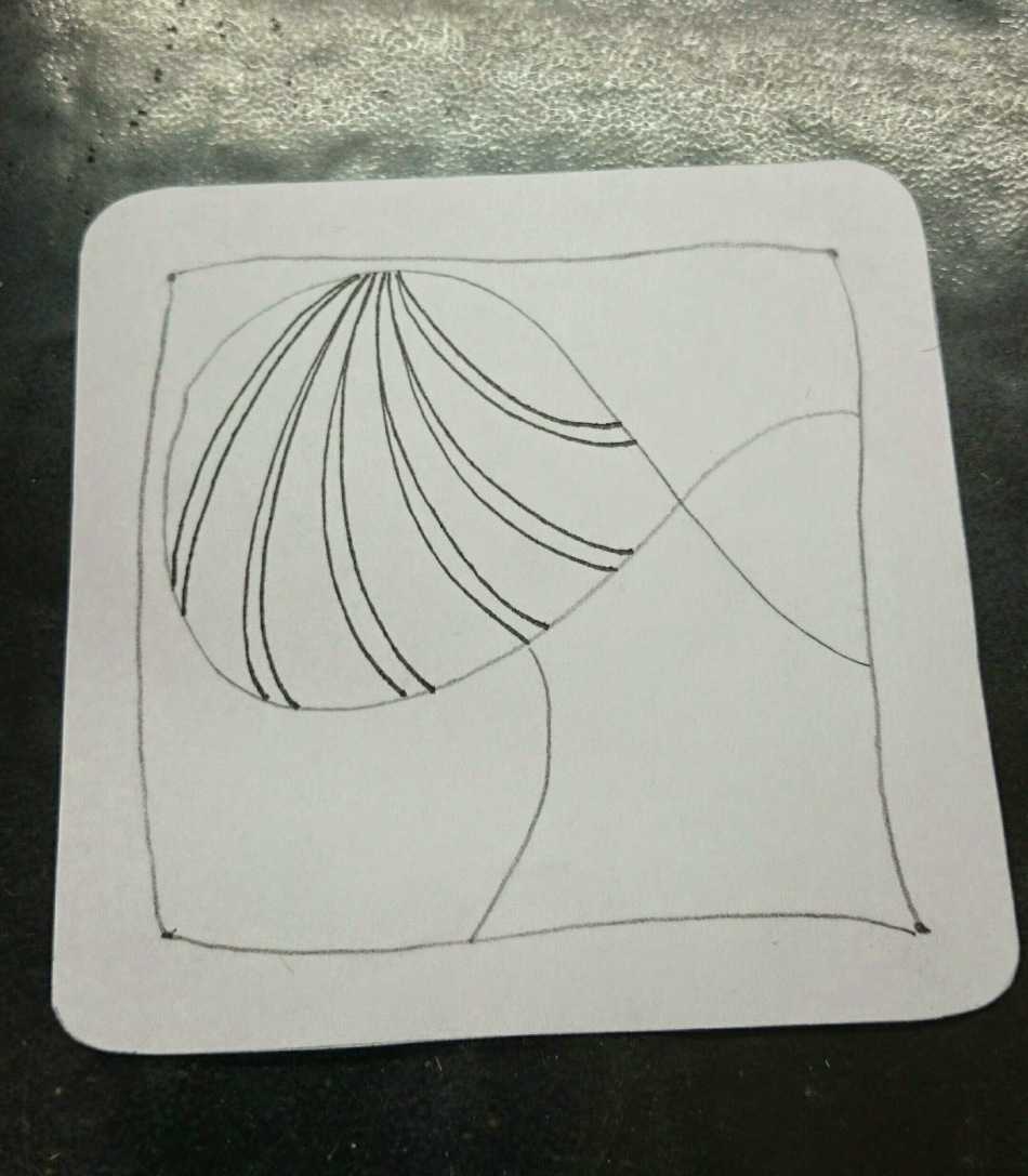 - Далее расчертить карандашом зоны, которые будут составлять целостность картины. Главное, все штрихи, которые будут делить на зоны лист, проводить без отрыва руки, плавно.