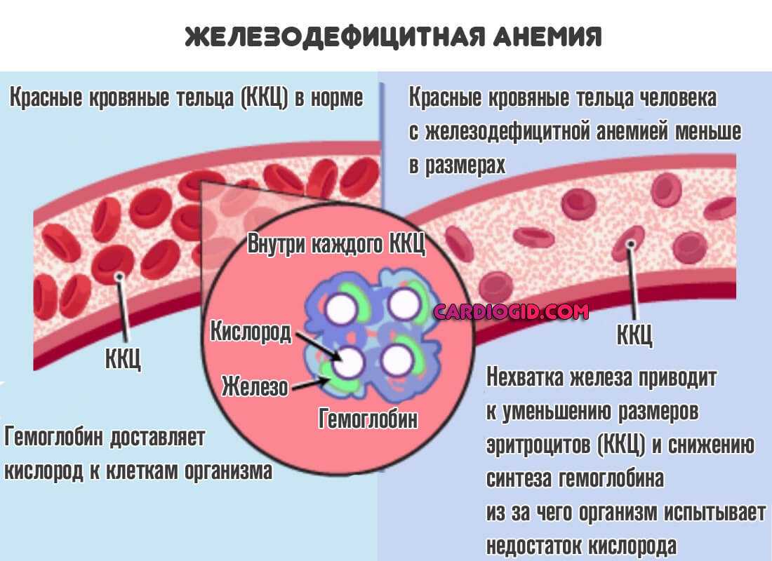 Поскольку железа недостаточно, гемоглобина вырабатывается мало для того, чтобы переносить кислород к центральной нервной системе.