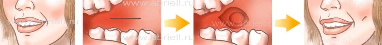 После вмешательства нельзя есть горячую пищу в течение нескольких дней, а также важно полоскать рот специальными антисептиками, которые назначит врач. Восстановление не занимает много времени, уже через 3–4 недели операционное поле почти полностью заживает