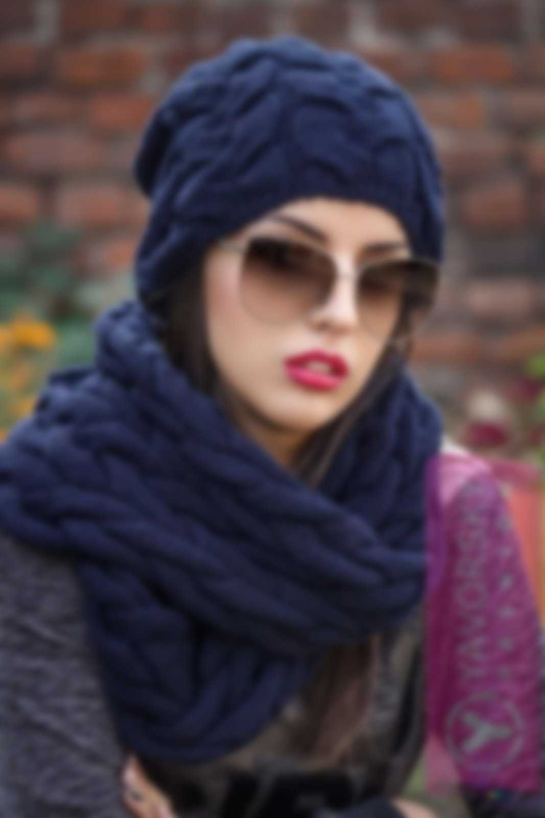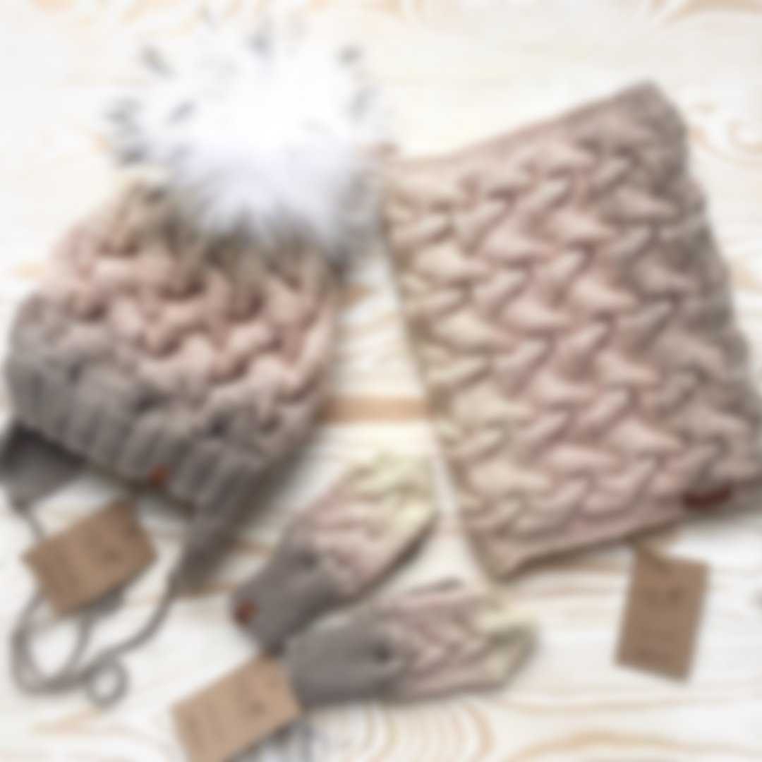 - шапка и снуд из толстых ниток, выполненные одним узор и в одной цветовой гамме;