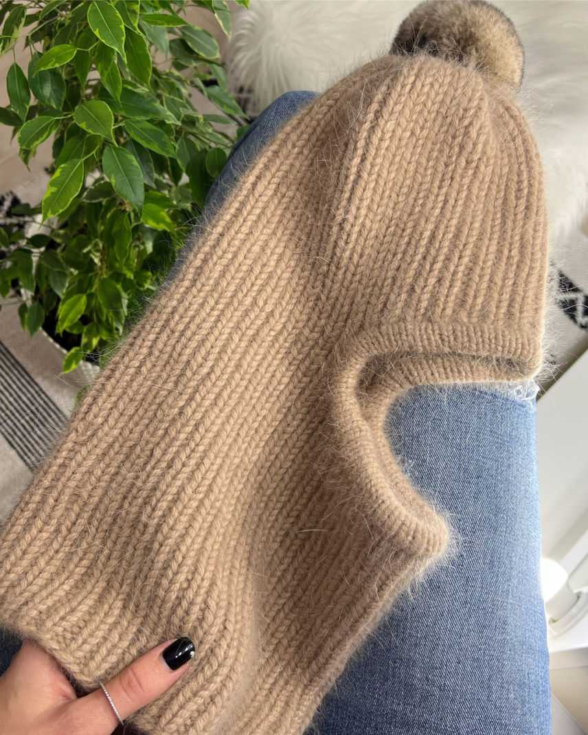 Принцип вязания балаклавы из пряжи Пуффи один и тот же для всех видов плюшевой пряжи с петельками: