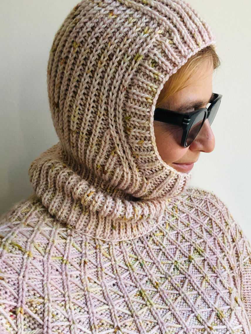 - Модель балаклавы с пелериной от макушки круговыми спицами и крючком