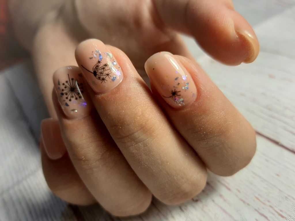 Цветочные узоры приходятся по душе многим модницам. В тандеме с нюдовыми оттенками они смотрятся невероятно. Это лучший дизайн для весенне-летнего сезона. Попробуйте покрыть ногти нежно-розовым лаком и добавить сверху васильки или пионы. Рисунки можно нанести при помощи кисти, а еще проще использовать наклейки. Все зависит от ваших предпочтений.