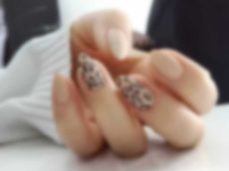 Этот дизайн определенно входит в модные тенденции 2023 года. Он особенно актуален для осеннего сезона. Если вы решите разбавить свой нюдовый маникюр леопардовыми пятнами на нескольких ногтях, то у вас получится создать молодежный дизайн. Также актуальны принты с имитацией кожи змеи, черепахи, зебры, коровы и тигра.