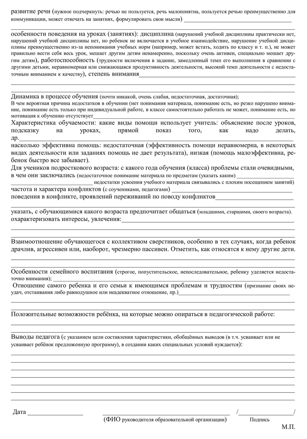 По этой же причине большое значение имеет подробная педагогическая характеристика. Учитель, который каждый день видит ученика и общается с ним, может наиболее объективно оценить динамику его развития.