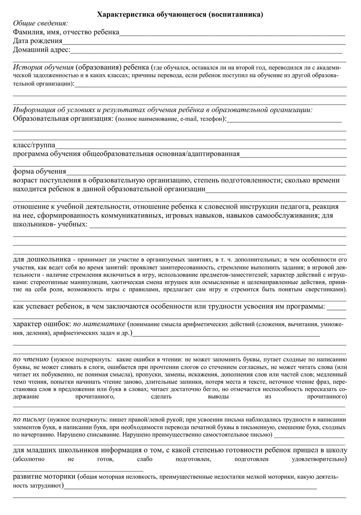 - характеристики учителя (воспитателя) и других специалистов, работавших с учеником (если таковые есть),