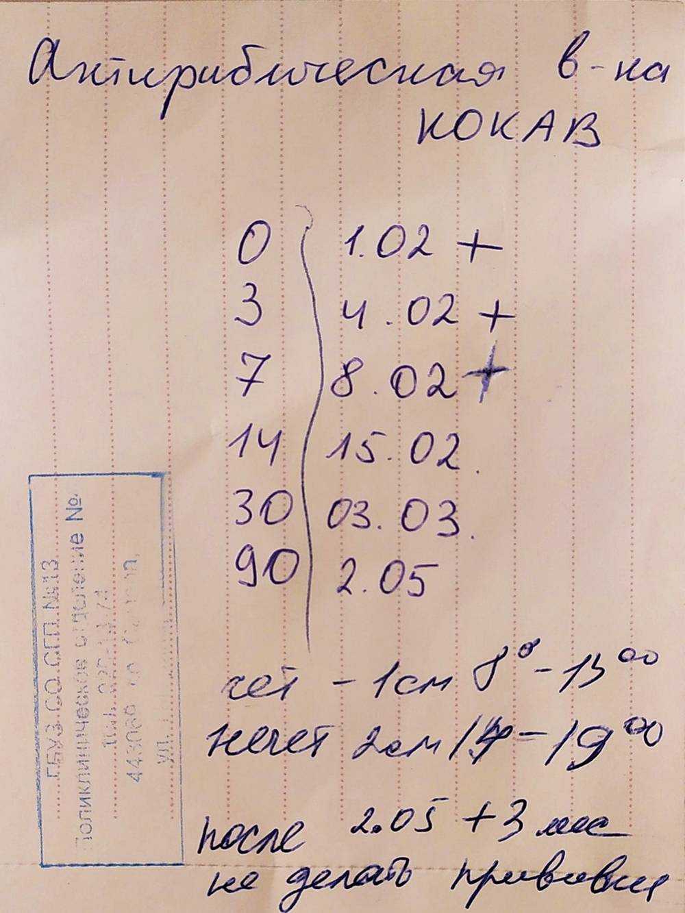 Самую последнюю прививку я еще не делала: по графику она выпадает на выходной. Дежурный процедурный кабинет на ремонте, неизвестно, успеют его открыть к маю или нет. Однако рабиолог сказал, что в моем случае ничего страшного не будет, если последнюю прививку сделать с опозданием в два дня. Надеюсь, все-таки удастся привиться вовремя.
