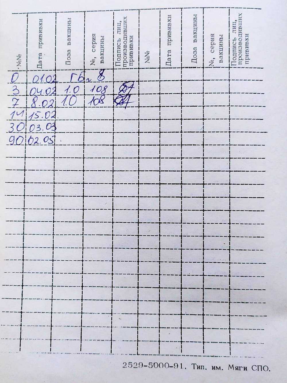 Пятую прививку по графику мне не сделали: не было на месте медсестры, так что я вакцинировалась на следующий день.