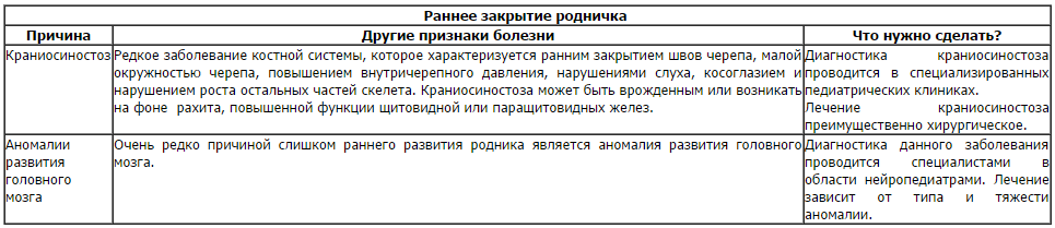 - Зарастание раньше времени может говорить об избытке кальция или свидетельствовать о наличии серьезных заболеваний — краниостеноз либо микроцефалия.
