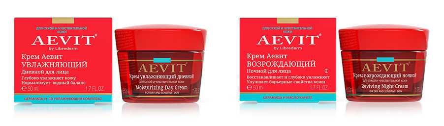 Уход за сухой кожей и чувствительнойИнтенсивно увлажняющий дневной крем АЕВИТ обеспечивает глубокое увлажнение на 24 часа, питает кожу, нормализует липидный баланс, устраняет сухость и ощущение стянутости. Ночной возрождающий крем с увлажняющим комплексом способствует восстановительным процессам, увлажняет и защищает от обезвоживания, стимулирует выработку гиалуроновой кислоты.