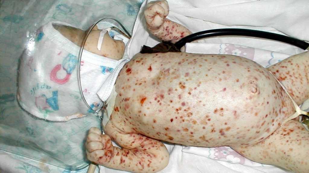 У младенца следует подозревать ТП, если у него по всему телу появляются петехии вскоре после рождения, а анализы крови показывают тяжелую тромбоцитопению. Клинические проявления могут варьировать от ограниченных или распространенных кожных петехий или синяков на коже, до обильных кровотечений или внутричерепного кровоизлияния.