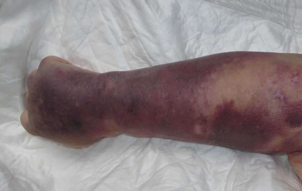 В качестве высыпаний встречаются крупные синяки, гематомы. Локализация — наружная поверхность конечностей. Живот, паховая область. Реже туловище, голова и лицо.