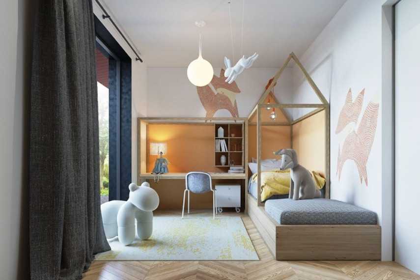 Акцентное освещение придумали архитекторы, чтобы подчеркнуть эффектные элементы здания. Интерьерные дизайнеры перенесли его в помещения и используют примерно с той же целью. Ну а в комнате школьника у акцентного света практическая задача — направленные на стены и в потолок светильники изгоняют из углов случайно сохранившиеся тени.