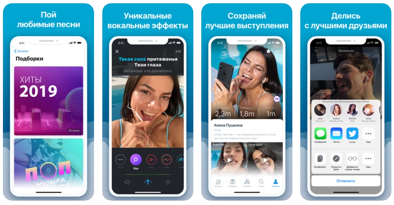 Его смело можно назвать лучшим караоке приложением для айфона с таким количеством фильтров, режимов и опций. Здесь даже можно собирать лайки и находить поклонников своего таланта.
