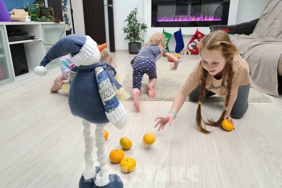 - кинуть пять мандаринов и попасть ими в коробку/миску издалека