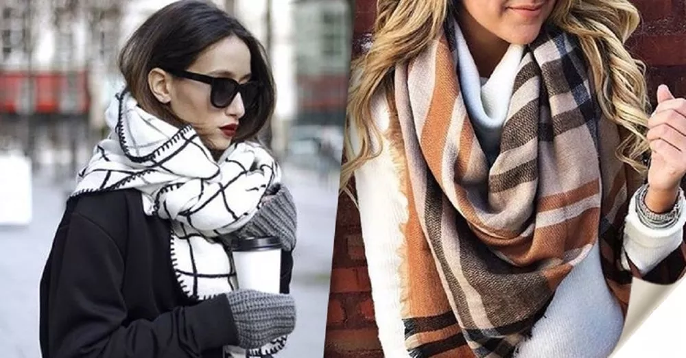 Если девушка – обладательница пышной фигуры, подобного решения лучше избегать всеми доступными способами. Шарф плед больше подходит для девушек с широкими бедрами и достаточно узкими плечами.