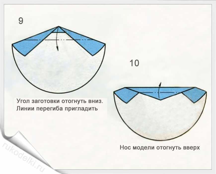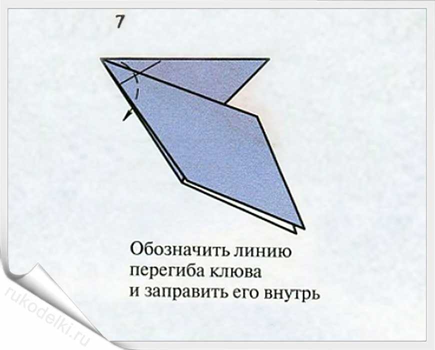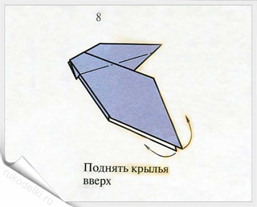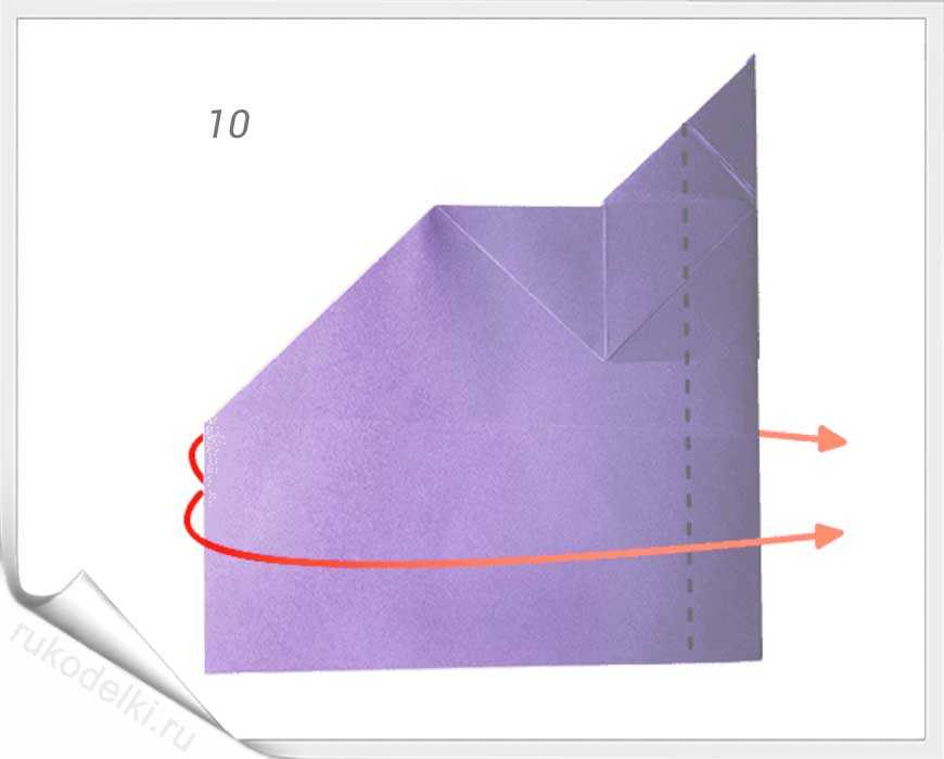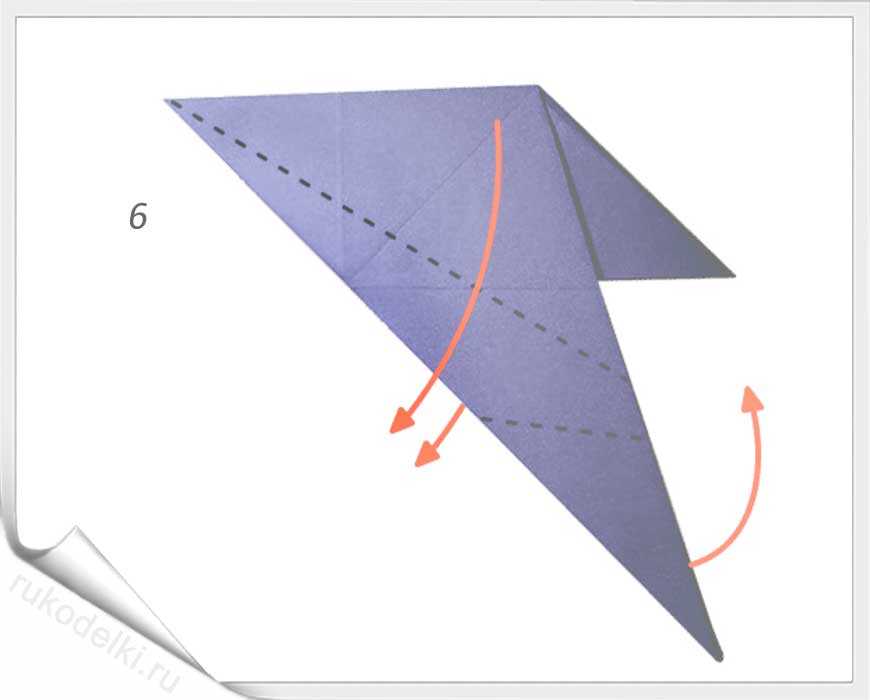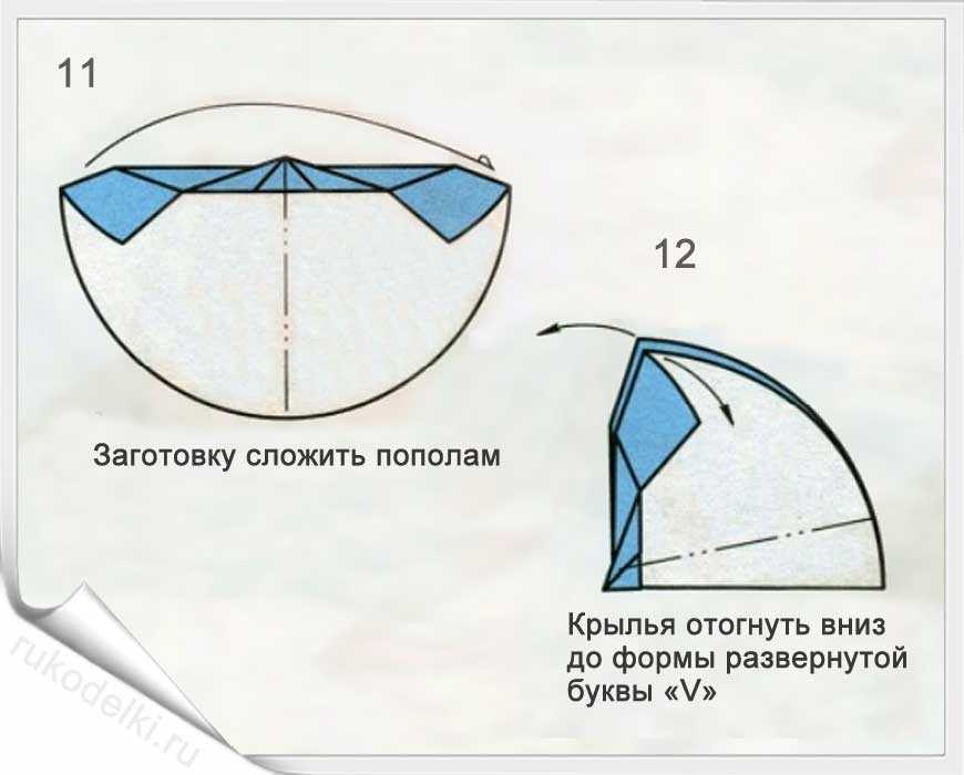 13. Загибаем сначала верхний уголок, а затем и все крыло вниз.