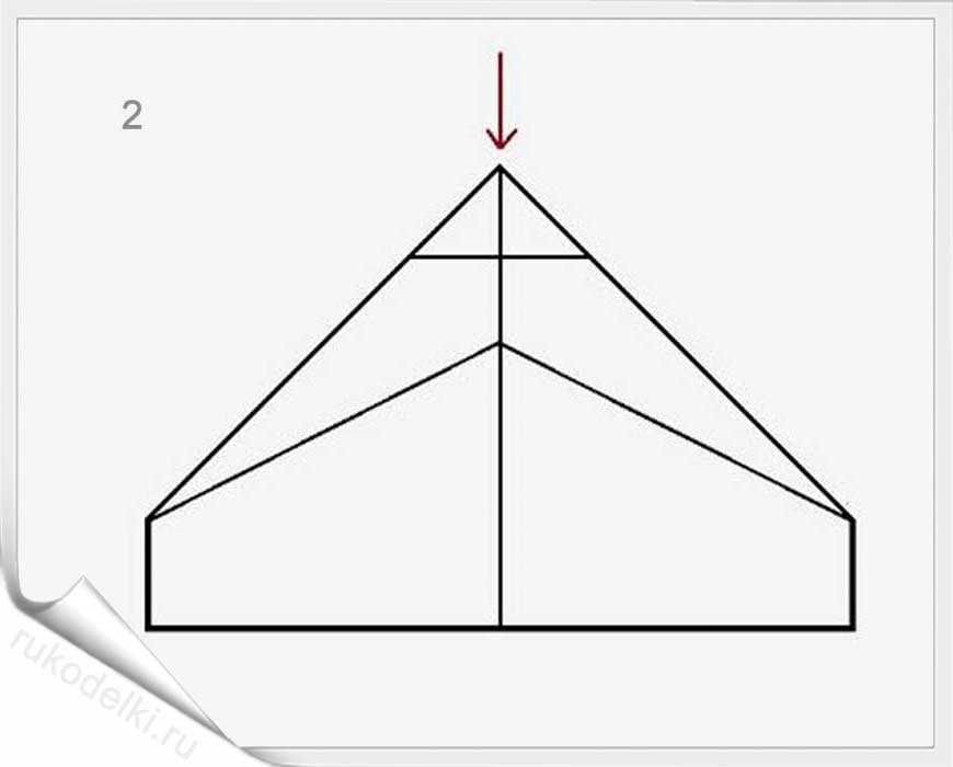 1-2. Формируем продольную линию изгиба так, как мы делали с вышеописанной моделью. Заворачиваем уголки листа по пунктирным линиям.