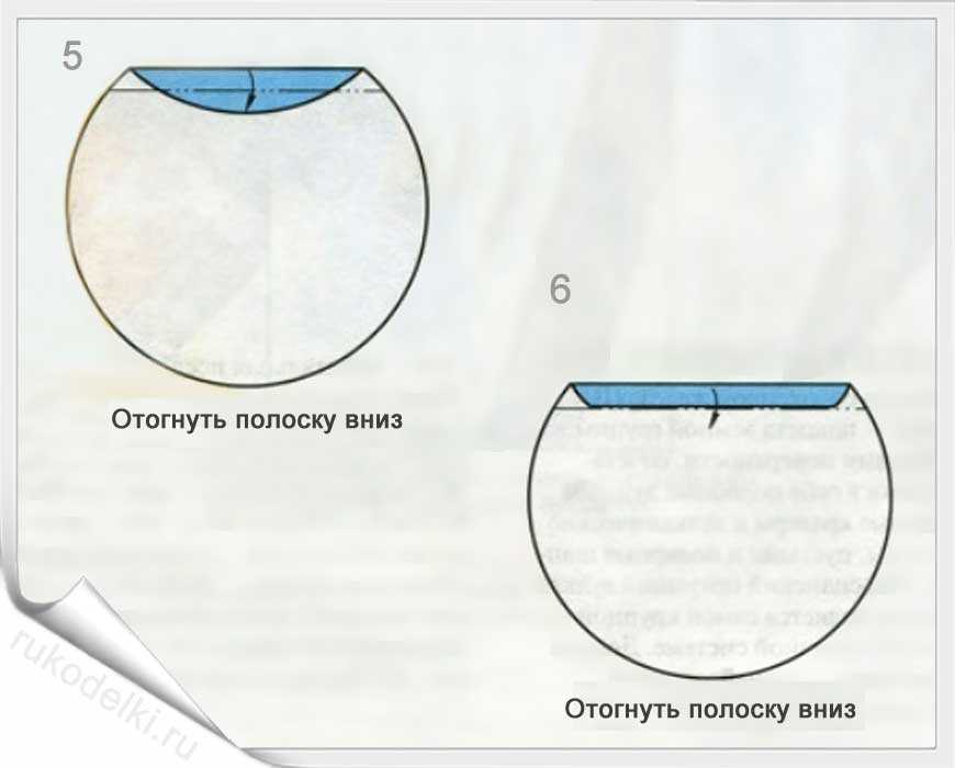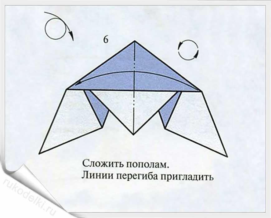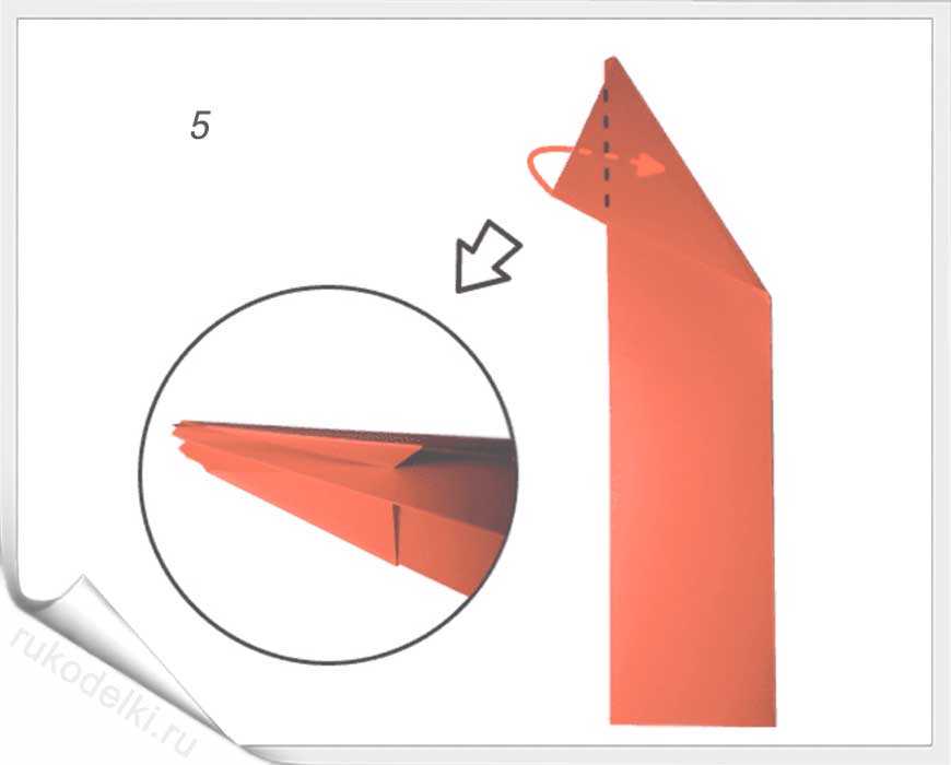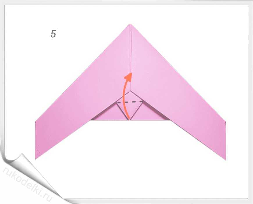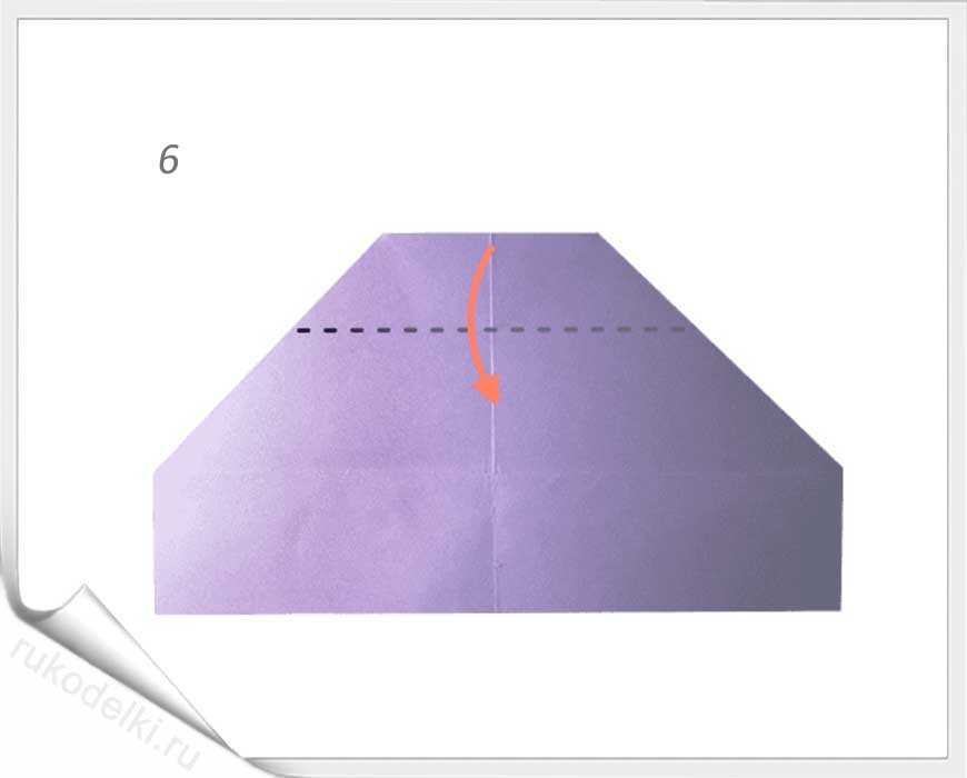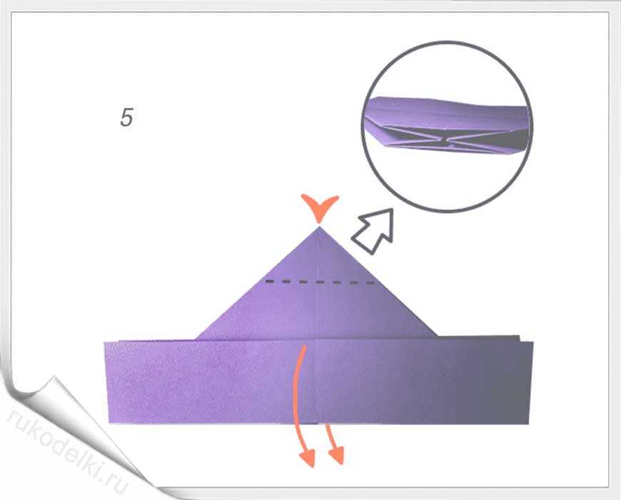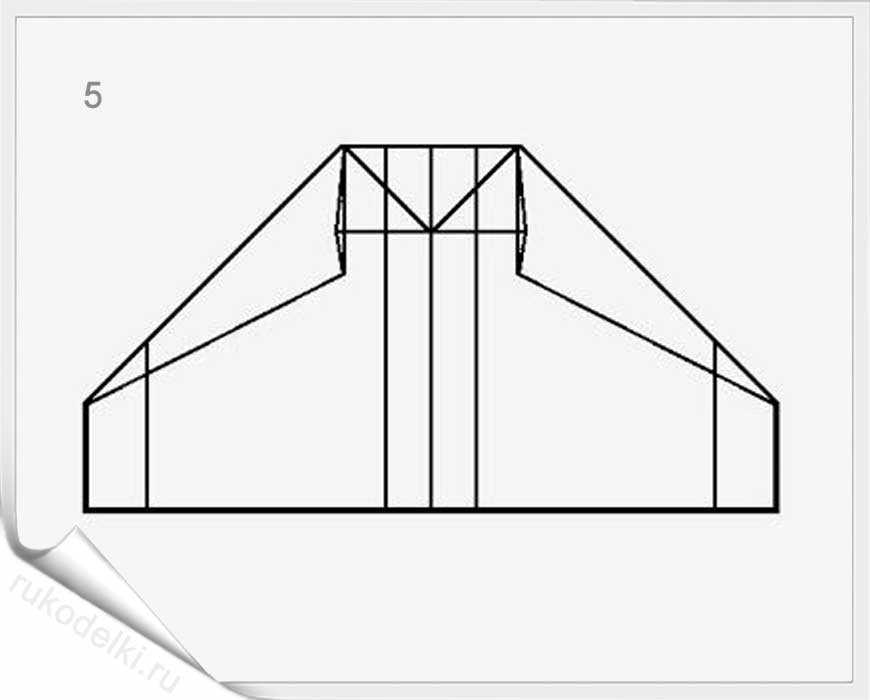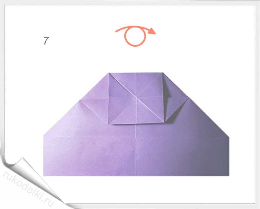 5-7. Лист бумаги складываем на себя и отгибаем верх как показано на рисунке.