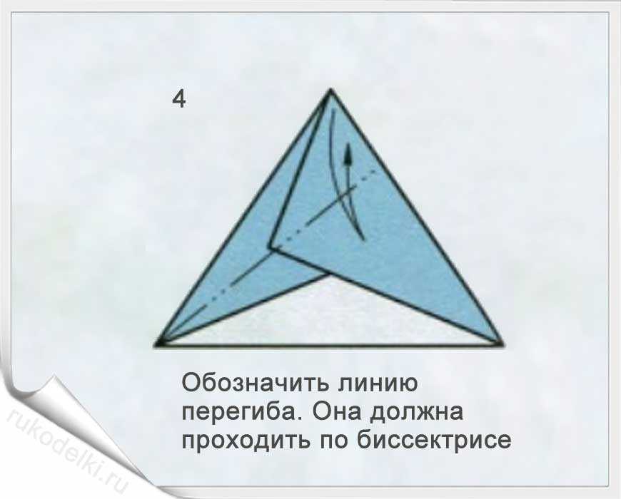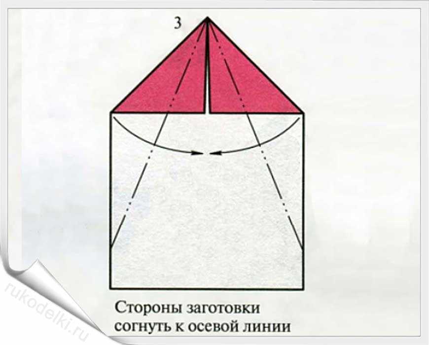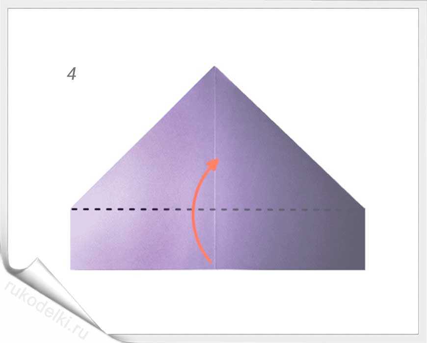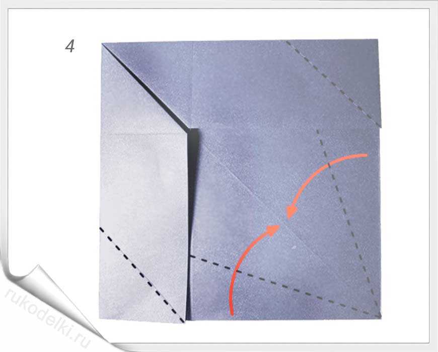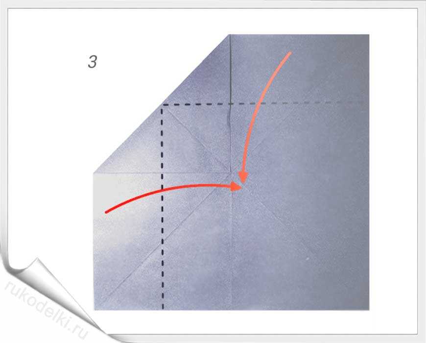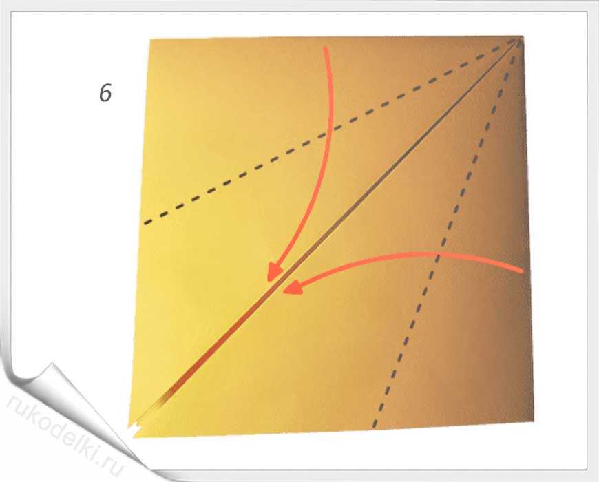 5. По отмеченной пунктиром на рисунке линии сложите уголок вовнутрь.