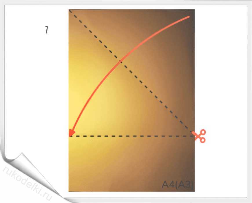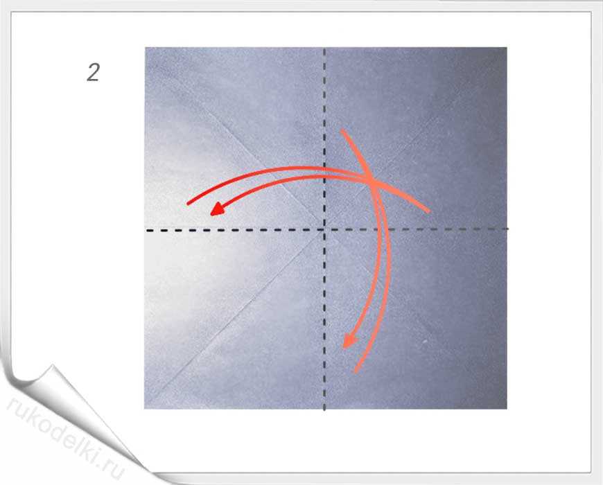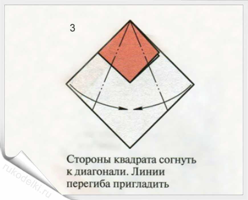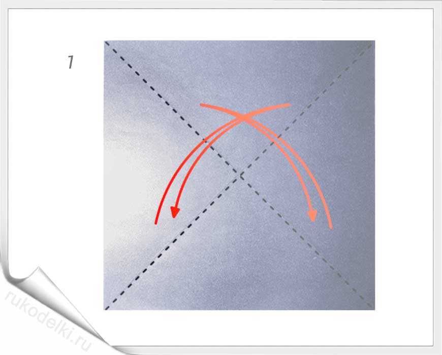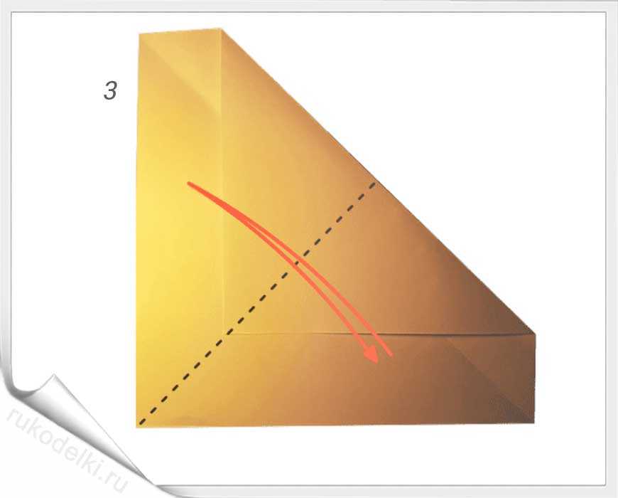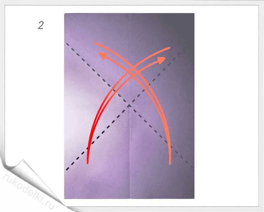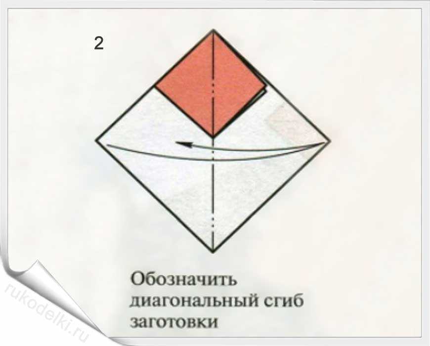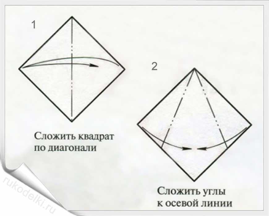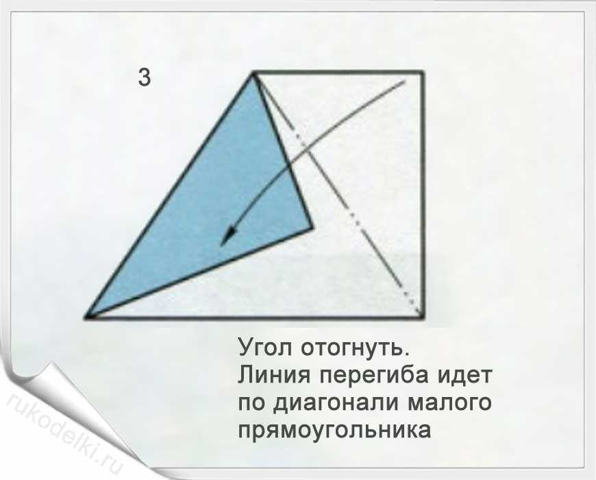 - Складываем, как на рисунке, по диагонали.