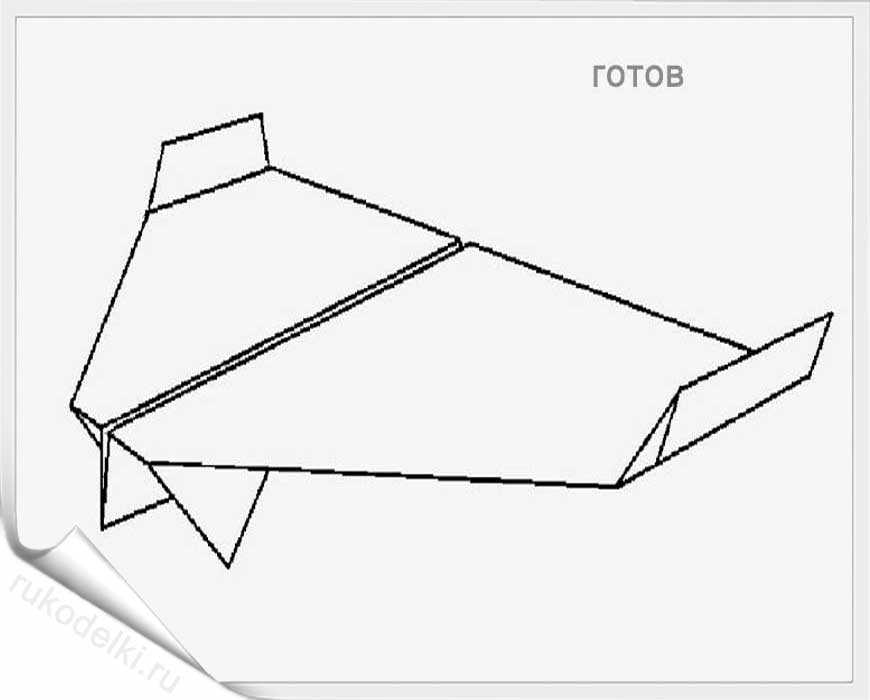 Вот еще одна схема для изготовления бумажного самолета. В отличие от предыдущих моделей, описанных в этой статье, этот самолет летает по довольно оригинальной траектории.