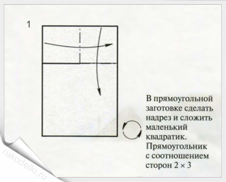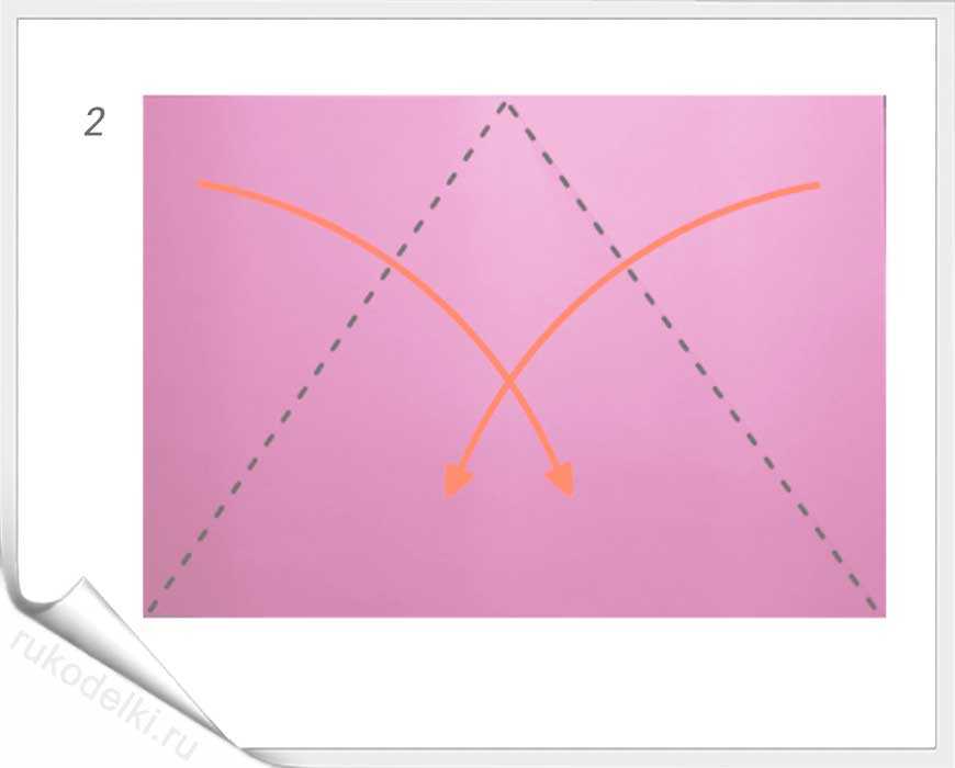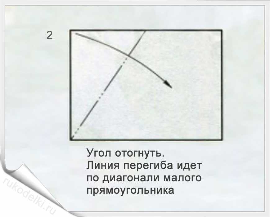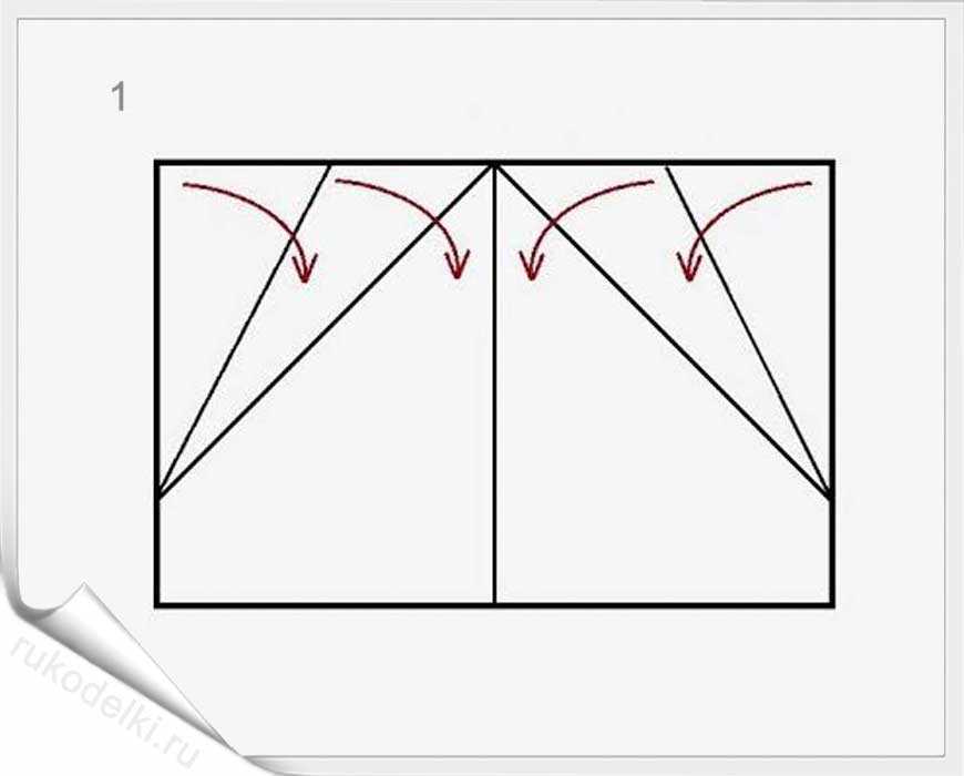 - Отгибаем по направлению «на себя» два угла прямоугольника.