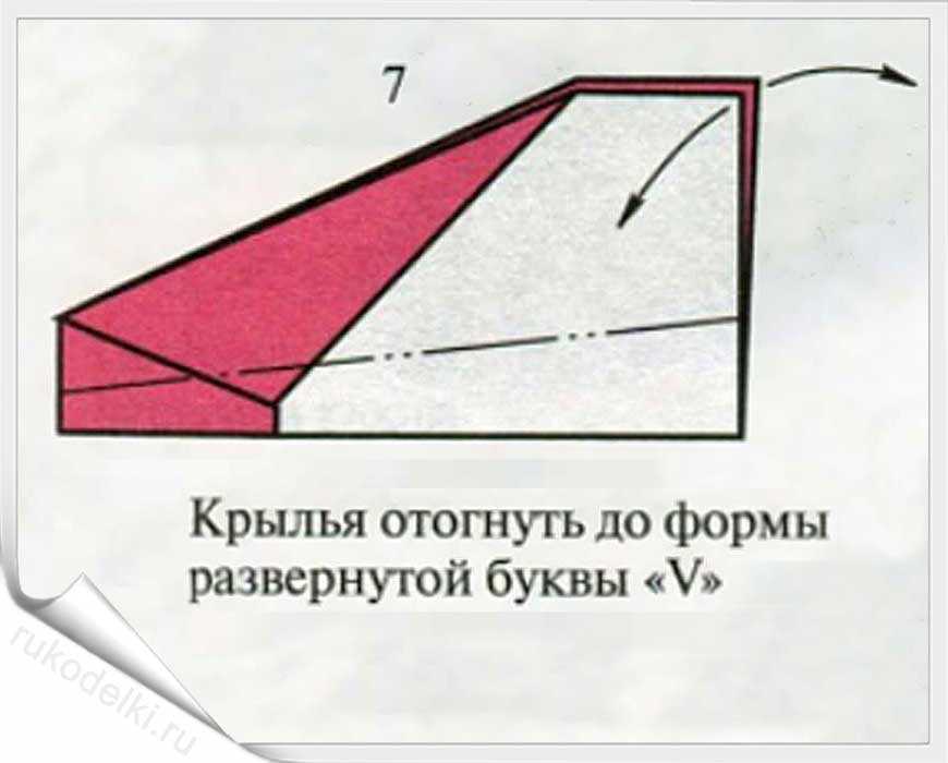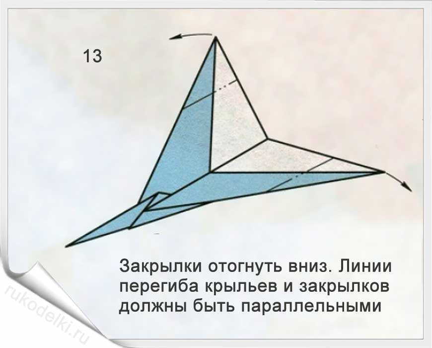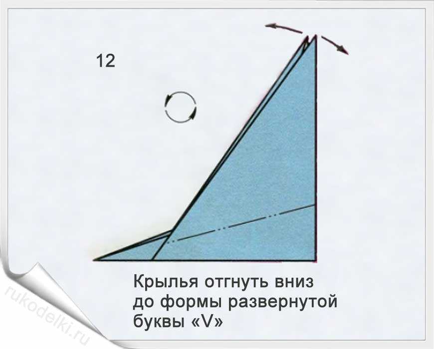 12. Рисунок увеличенного крыла показывает, как нужно его согнуть.
