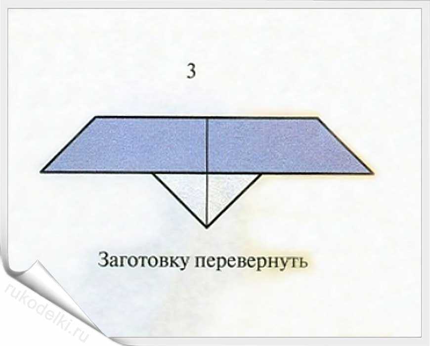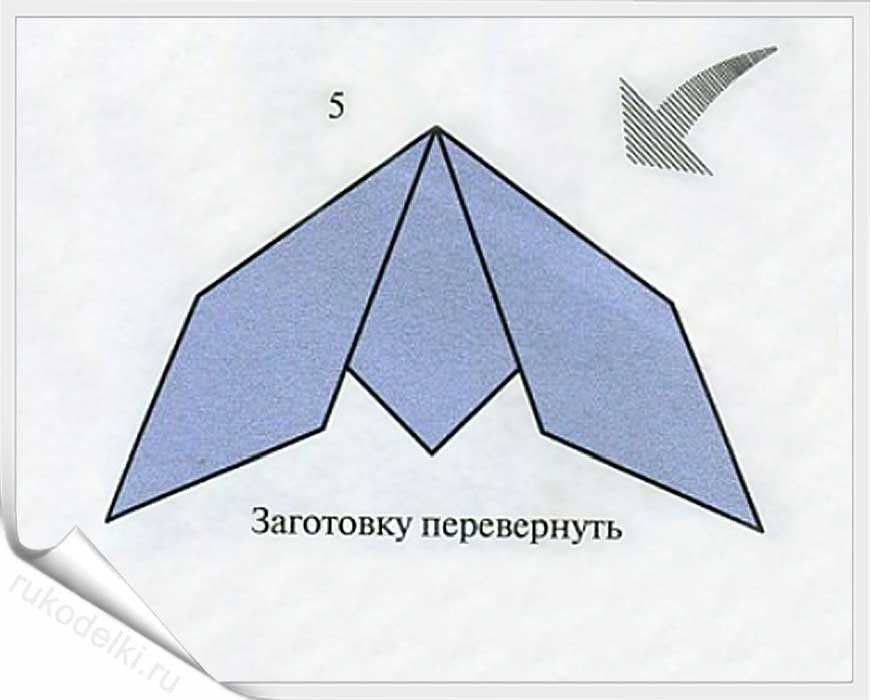 Переворачиваем полученную фигуру на обратную сторону и формируем две складки, как показано на рисунке