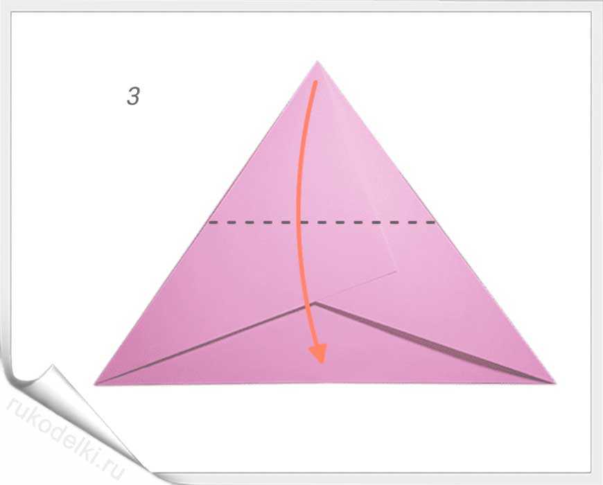 Теперь верхний угол треугольника подгибаем вниз, чтобы угол соприкасался с основанием треугольника.