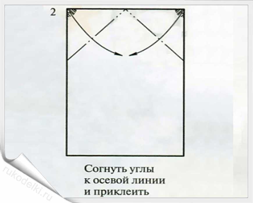 - Сгибаем углы фигуры по пунктирной линии.