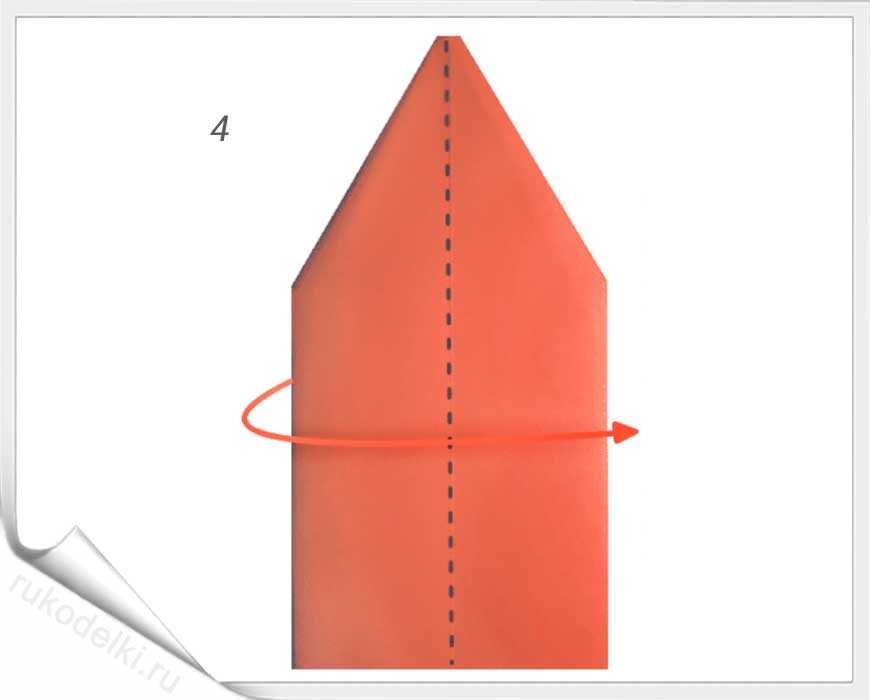 - Складываем фигуру поперек таким образом, чтобы острый угол оказался на середине противоположной стороны.