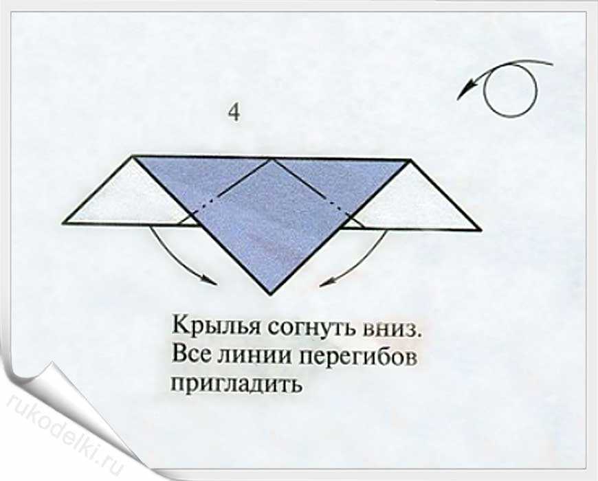 Теперь остается сделать крылья. Отгибаем поочередно крылья, как показано на фото.