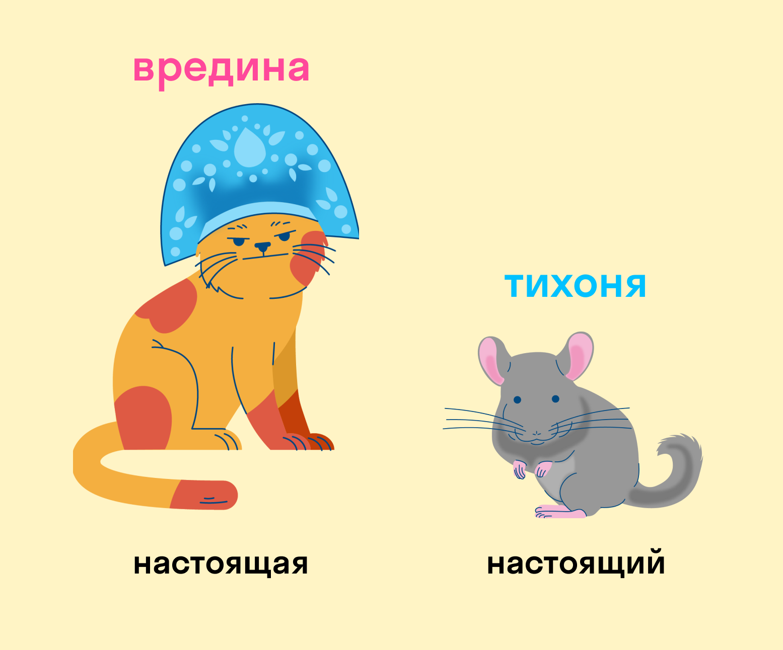 Примеры: зануда, неженка, плакса, тихоня, заводила, непоседа, почемучка, зазнайка, сладкоежка.