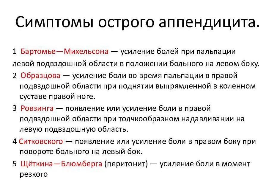 Если у вас есть подозрение на аппендицит, необходимо немедленно обратиться к врачу для диагностики и лечения. Самодиагностика и лечение могут быть опасными для здоровья и жизни.