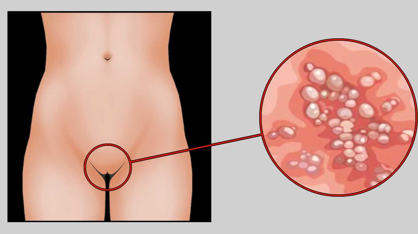 Появление водянистых пузырьков, высыпаний на больших и малых половых губах, язвочки, эрозийные поражения, жжение, покраснение, зуд, отечность – все это признаки генитального герпеса. Параллельно с этим возникают болевые ощущения в паху, выделения (из мочеиспускательного канала и влагалища). Мочеиспускание сопровождается болью и жжением.