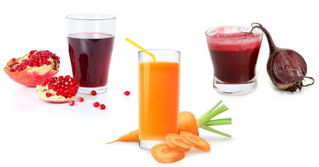 Для нормализации уровня железа женщинам в период вынашивания ребенка нужны соки из моркови, свеклы и граната. Их можно употреблять по отдельности или готовить смесь из 100 мл моркови и по 50 мл гранатового и свекольного. Последний должен постоять до употребления 2 часа, а перед приемом соков их следует развести водой или настоем шиповника наполовину. В день такого разведенного напитка потребуется 2 стакана.
