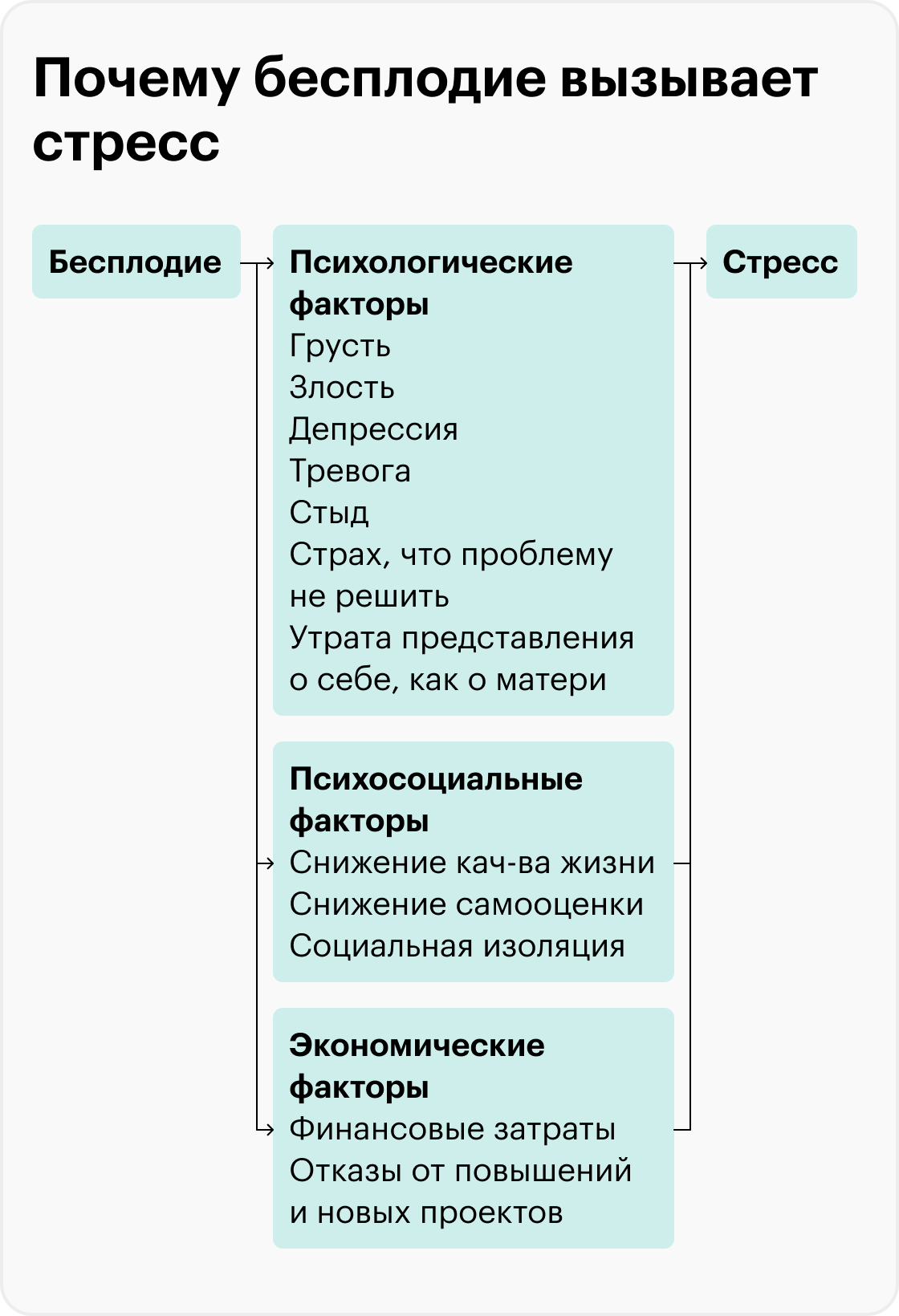 - Психологическое состояние женщины влияет на работу репродуктивной системы, но бездоказательно считать психологический фактор главной причиной бесплодия.
