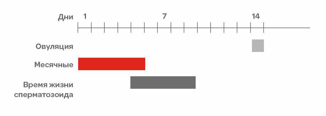 Вот и ответ на вопрос, можно ли забеременеть во время месячных. В реальном цикле овуляция может произойти значительно раньше, чем вы рассчитывали. К этому дню в организме женщины еще могут сохраниться жизнеспособные сперматозоиды, даже если половой акт случился во время менструации — и здравствуй, незапланированная беременность.