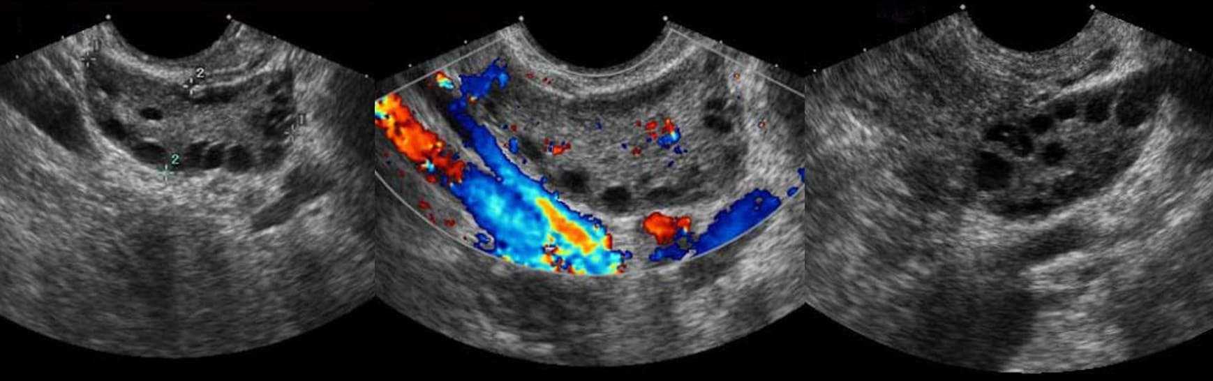 Ультразвуковое исследование. На УЗИ определяется увеличение яичников, появление кистозных включений – мелких фолликулов размерами до 1 см числом не менее 10.